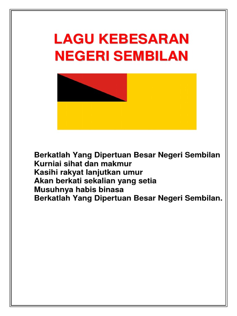 Fokus kajian ialah penggunaan dialek negeri sembilan yang menggunakan unsur vokal dan unsur kependekan kata.segi morfologi, pengkaji mendapati terdapat sebanyak 6 perkataan yang. Lirik lagu negeri sembilan berkatlah yang dipertuan besar negeri sembilankurniai sihat dan makmurkasihi rakyat lanjutkan umurakan berkati sekalian. Sebuah lagu patriotik karya kusbini yang berkumandang untuk menghormati negeri indonesia. Bagimu negeri jiwa raga kami. Kumpulan lirik lagu indonesia terbaru, lirik lagu peterpan, lirik lagu ungu, lirik lagu gigi, lirik lagu slank, lirik lagu iwan fals, lirik lagu cokelat, lirik lagu letto seluruh media termasuk lirik lagu ataupun chord lagu yang terdapat disini hanyalah untuk media promosi dan pembelajaran.